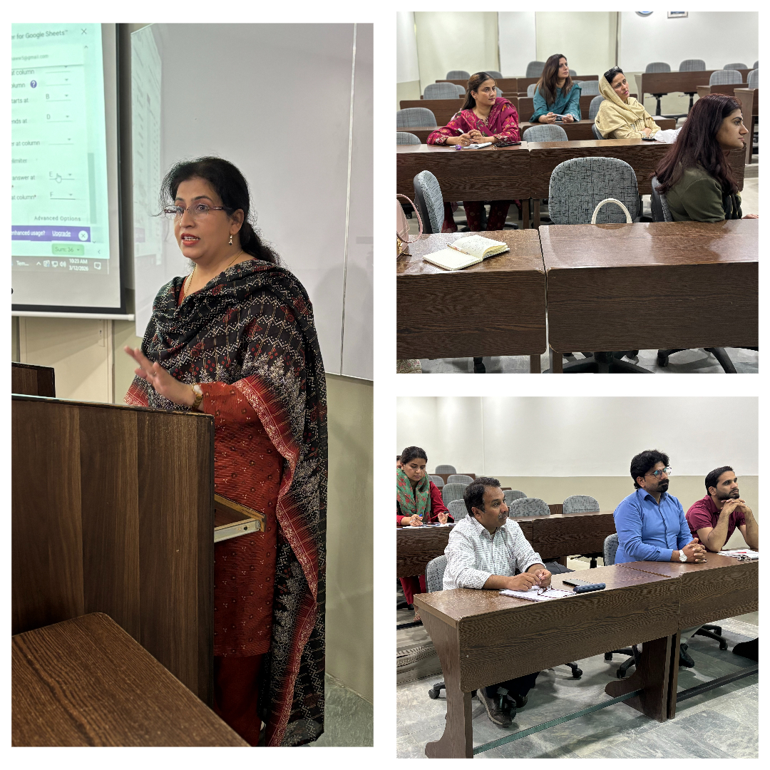 Dr. Amna Shahid, Head CFL, conducted a faculty training session on 12 March 2026, especially in the wake of ongoing online classes. The session focused on the use of Artificial Intelligence (AI) to enhance student learning and develop effective online assessments. Faculty members were introduced to practical ways of creating quizzes, evaluating student performance, and improving engagement in virtual classrooms using AI tools. The session provided valuable insights to help faculty effectively manage teaching and assessment in the online learning environment.